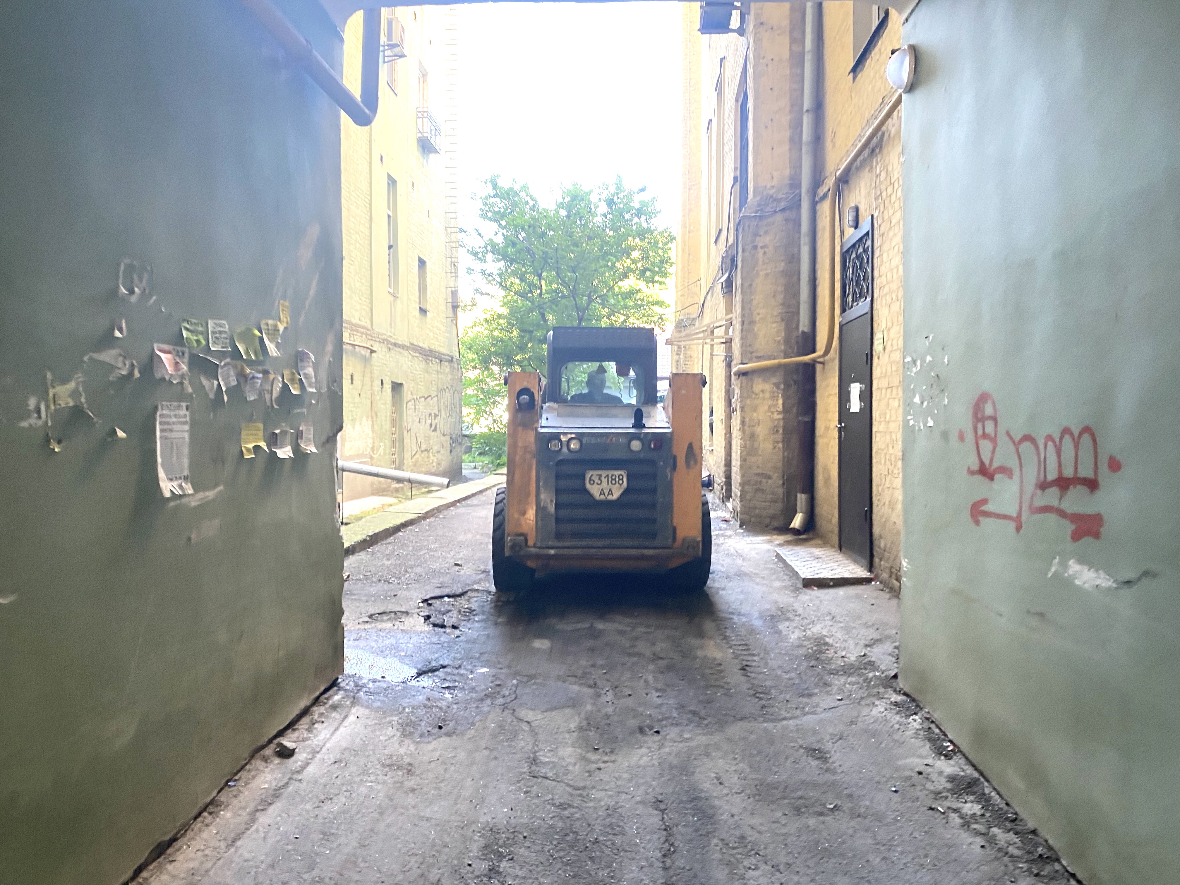 ВПЕРВЫЕ за многие годы во дворе нашего дома появилась дорожная техника для укладки асфальта и бордюров.